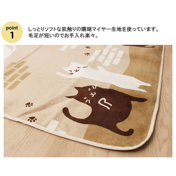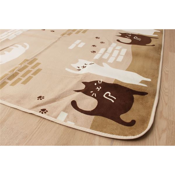 なめらかタッチ ラグマット/絨毯 【約185×185cm】 洗える ホットカーペット対応 珊瑚マイヤ ネコ柄 『TPゆるねこ』