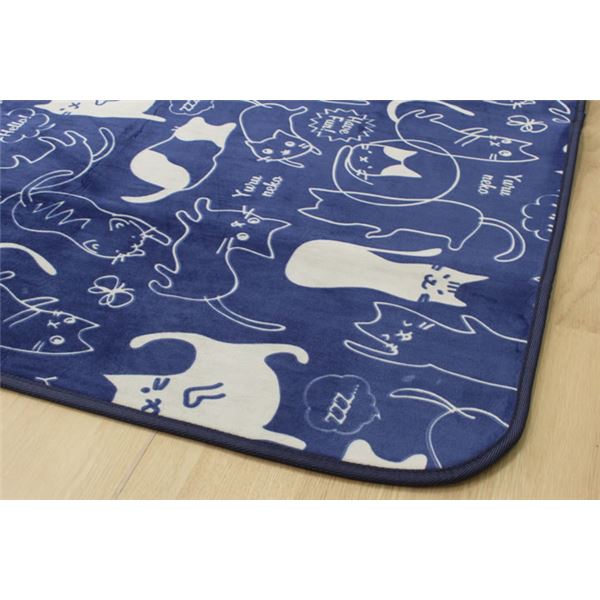 もちもちタッチ ラグマット/絨毯 【ネイビー ネコ柄 約200cm×250cm】 洗える ホットカーペット対応 『ミーニャRUG』